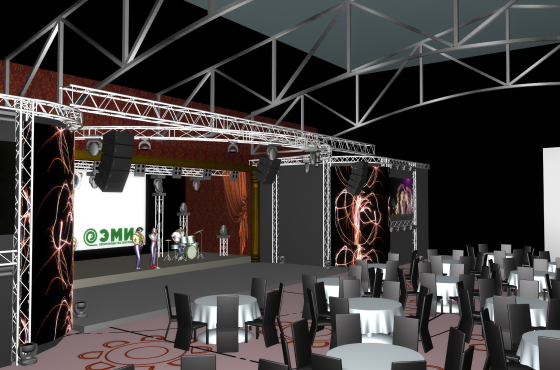 Каждое мероприятие требует точного технического расчёта, поэтому наши специалисты, перед началом основных работ, готовят предварительный макет, который представляет собой 3D визуализацию конечного мероприятия с учётом всех технических требований клиента
